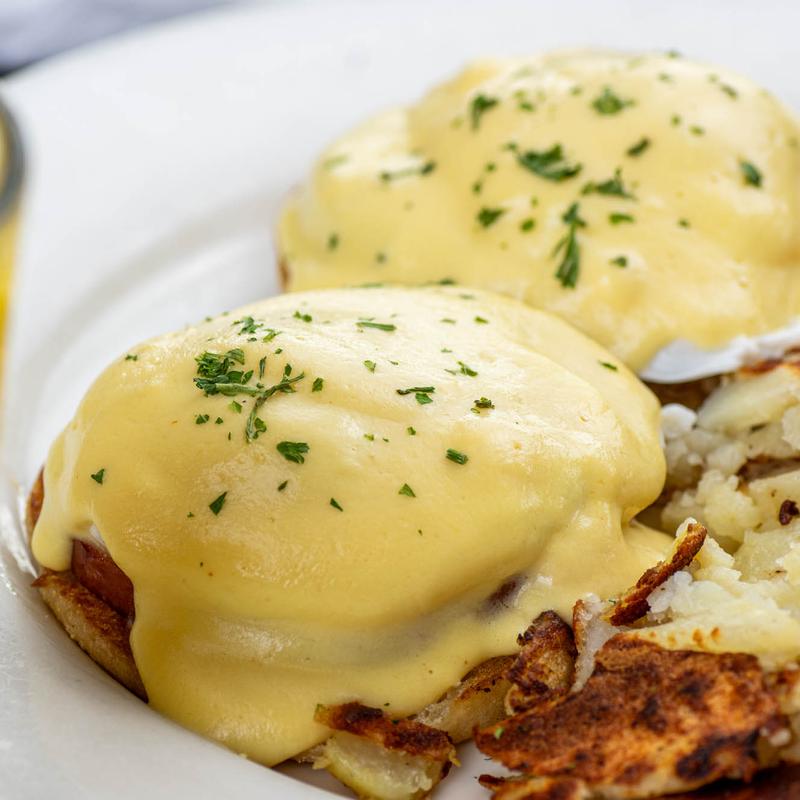 Served with golden brown potatoes and your choice of toast or buttermilk pancakes.