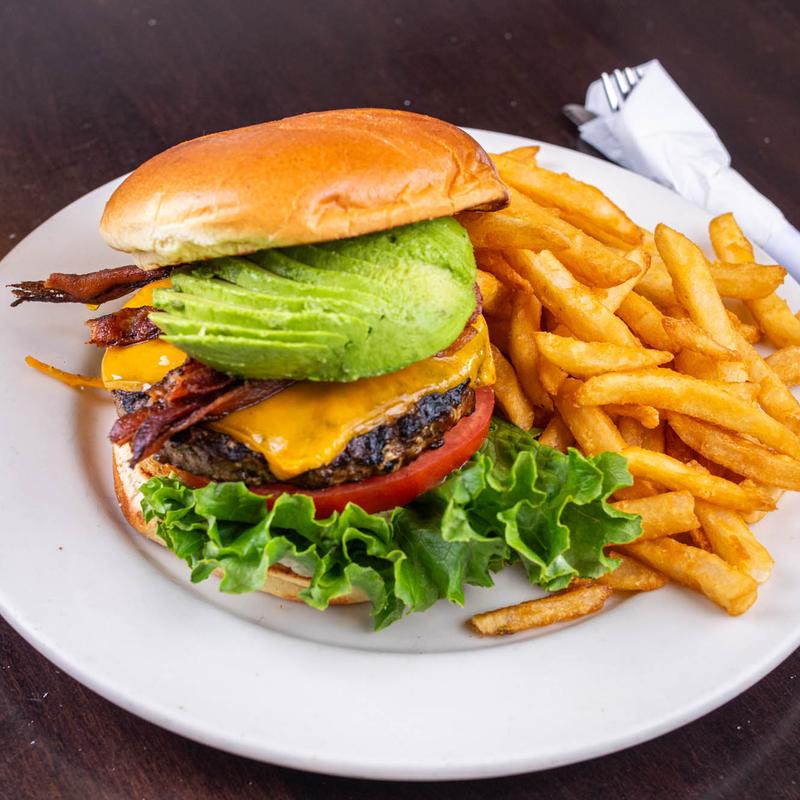All burgers and sandwiches are served with house-made coleslaw, special coated seasoned fries, pickle, and a cup of soup
